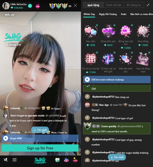 Có. Đây là điểm mạnh lớn nhất của các app livestream. Người xem có thể chat trực tiếp, gửi quà, tham gia mini game hoặc tương tác riêng tùy theo từng nền tảng như Swag Live.